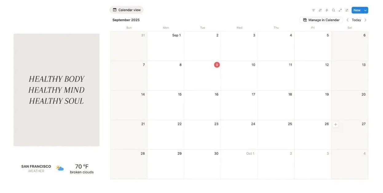 To round things out, we have a calendar to input upcoming important dates, a weather widget so we can plan outfits accordingly, and a cute little quote. You can add calendar items by mousing over the date you want to add something on and clicking the plus icon.