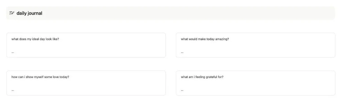 Next we have a cute little journal section with some prompts. This is your space to get out all your thoughts and feelings, or make random notes. This section should be pretty straightforward to use - simply type in the boxes to journal. You can also change out the prompts, or add/delete journaling boxes to create your perfect custom daily journal.